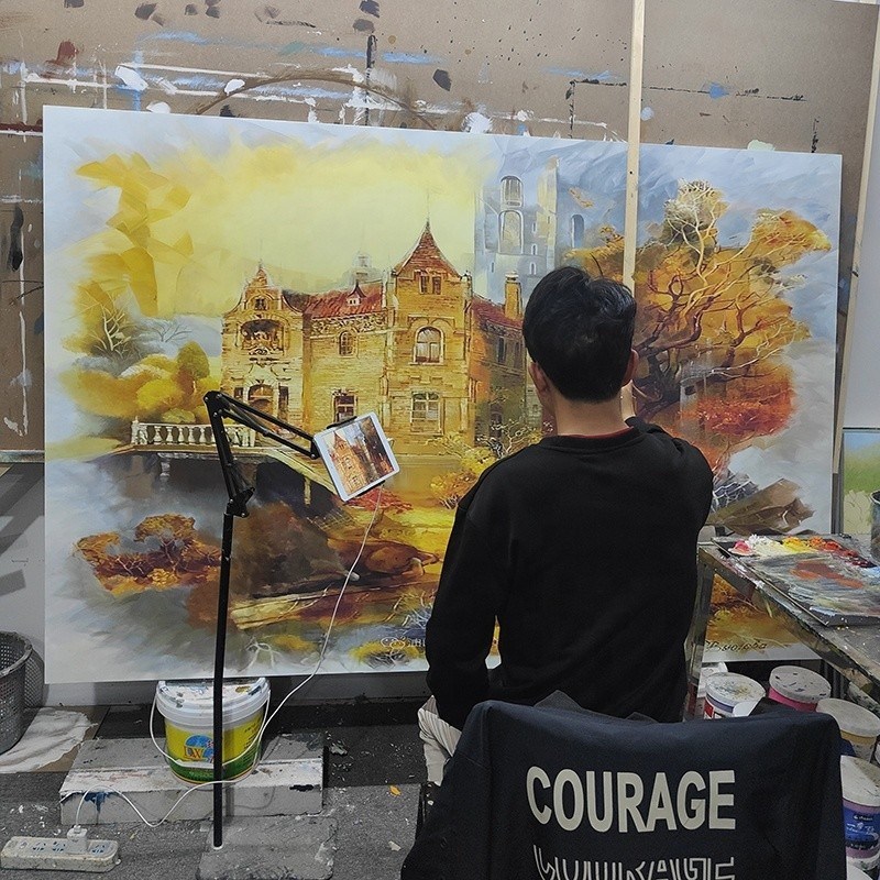 Технический: | Ручная живопись + ручная нанесение золотых листьев | ||||||