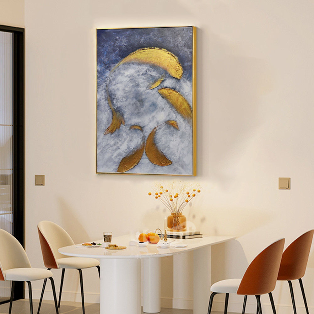 Масляная живопись Средний и 6 цветовой метод печати Используется для ручной живописи золотых рыбок Золотая фольга Искусство гостиной Искусство 3