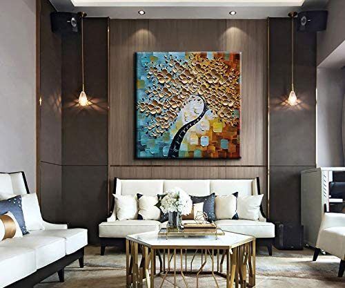 Масляная живопись "Цветущая миндальная ветвь в стиле импрессионизма" - Ручная роспись на холсте для декора дома, пейзаж, подвесное панно
